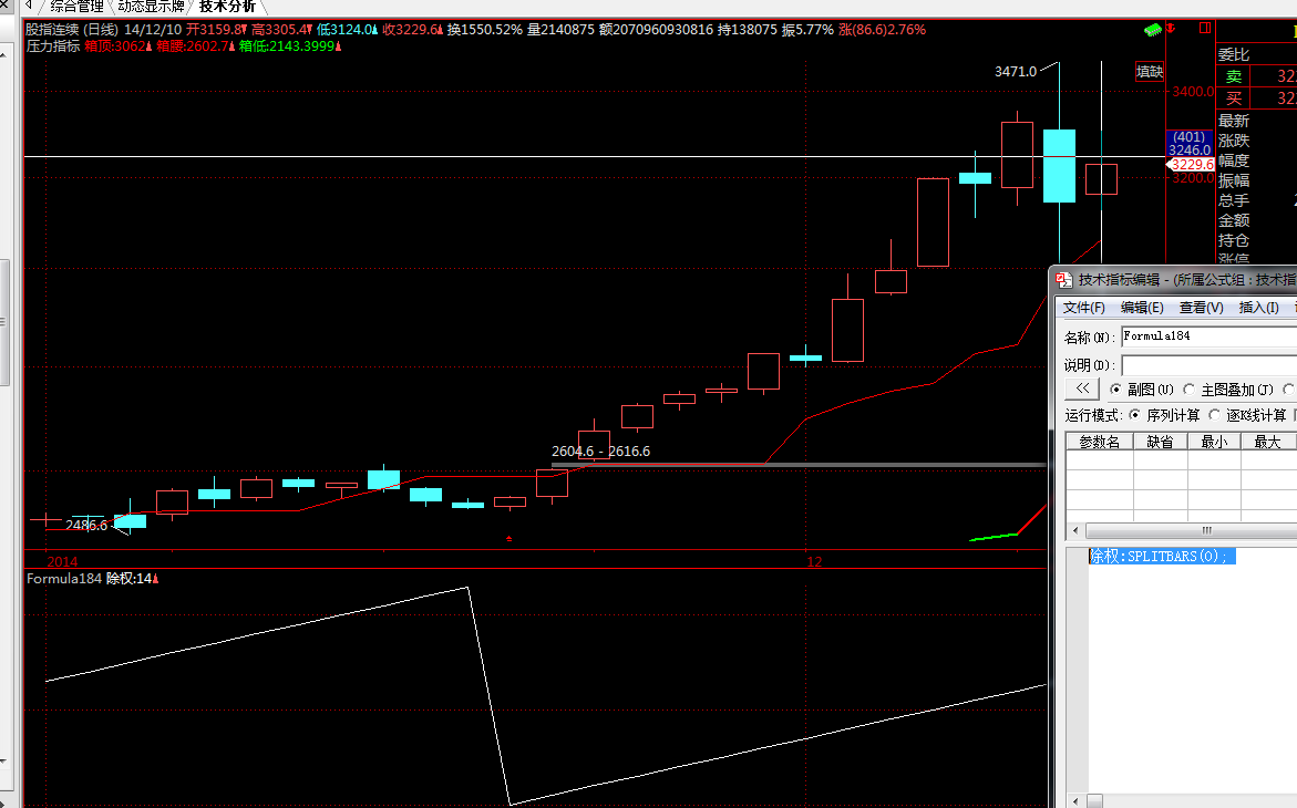 除权:=SPLITBARS(0)=0;