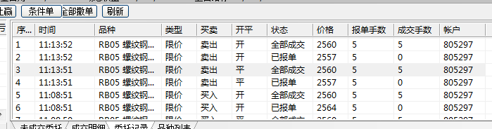 我用的是市价指令,模拟交易的时