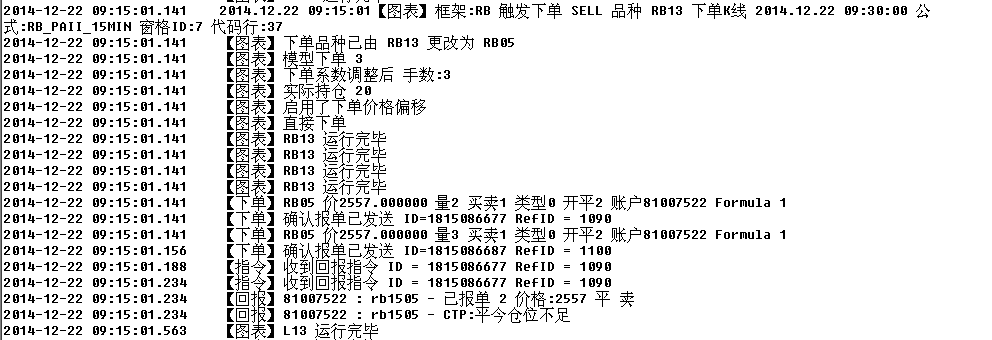 我们又仔细查了下,问题更复杂了,详细情况我叙述下,上周五有17手螺纹多单隔夜无空单,周末重启过一次电脑,今天早上9点一开盘的时候模型A平了3手多单,瞬间又开回来3手多单,从图表信号上来看模型A的多单,在周五最后一根K线上已经平调了,不知为什么又平了一次,然后又开了3手,所以今天是有今仓的,之后模型B平仓的时候就提示平今仓位不足了