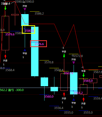 请教:当根K线满足条件开空收盘平仓。第2根K线满足开空条件继续开空收盘平仓。如图第1根K线3580.8开空,收盘平仓。第2根K线3576.6满足条件继续开空。