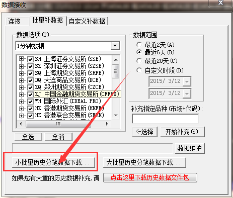 先把工具-》选项-》维护里分笔数据存储周期调大 再补充分笔。