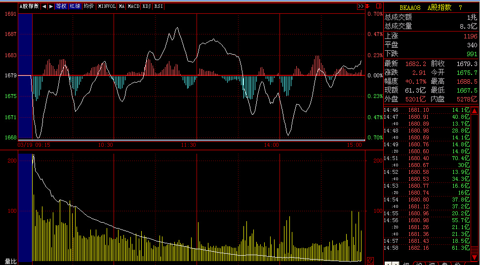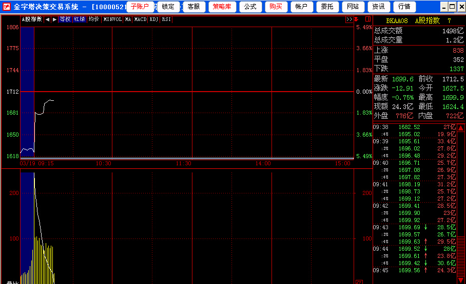 以前我也发现自定义指数的BUG 就是在每天最后一分钟出现大阴棒的问题,事隔一年 现在又出现新的BUG!就是每天个别的股票自定义板块指数开盘时头几分钟都出现大阴棒!出错原因还是源于竞价时间的数据问题,下图是A股指数的分时图,每天都是哦大幅低开,郁闷