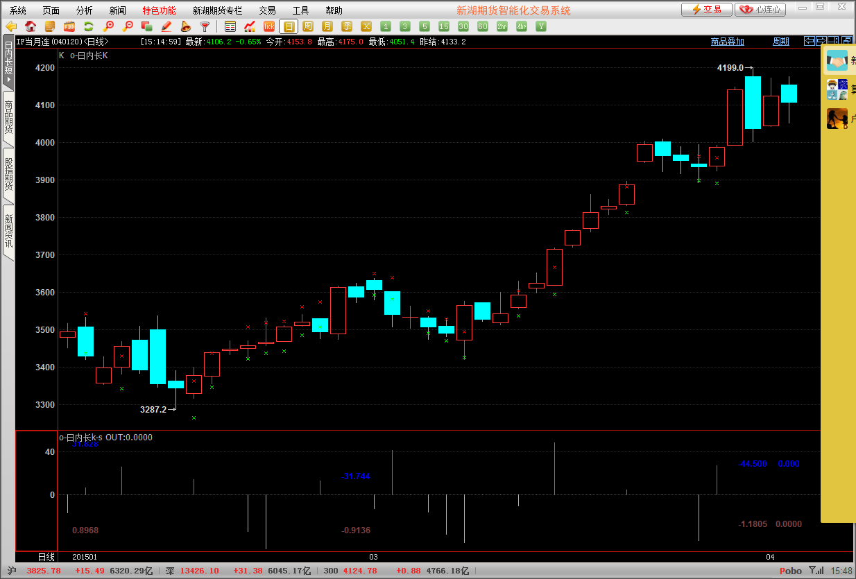 1、我想这中间有些误会了,一开始我发帖的时候,是指整个指标没有出现在图形上,包括每天都会有的两个价格,这个事后想可能是跨周期数据不全的问题,但是沪深300期指连续的日线数据我不可能没有,那么我猜是因为最近要新上两个期指合约,包括IF在内的名称和代码有了改变?
