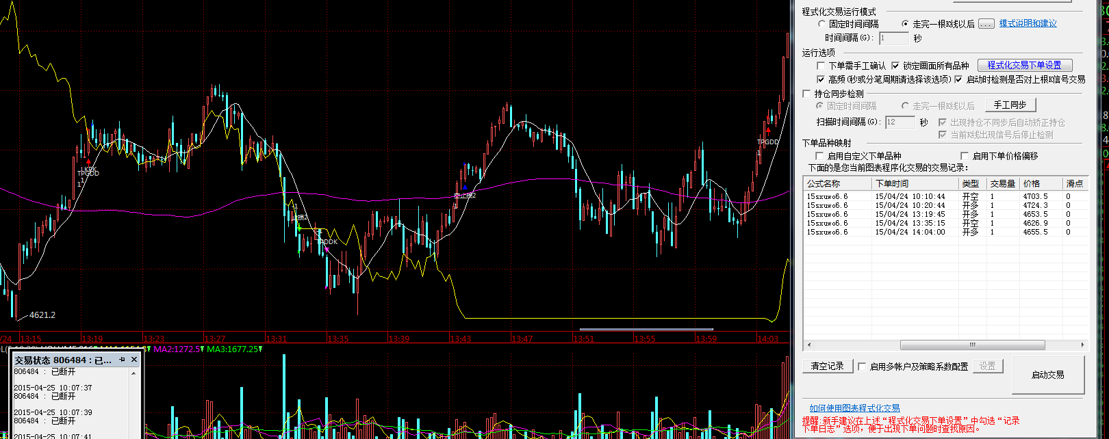 2015-04-24 13:44:15.416    2015.04.24 13:44:15【图表】框架:Technic 触发下单 SELLSHORT 品种 IF00 下单K线 2015.04.24 13:44:15 公式:15sxuwo6.6 窗格ID:0 代码行:498