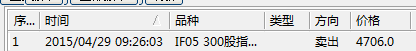 2015-04-29 09:26:03.811    【回报】00619 : IF1505 - 已成交 1 价格:4706.0 开 卖