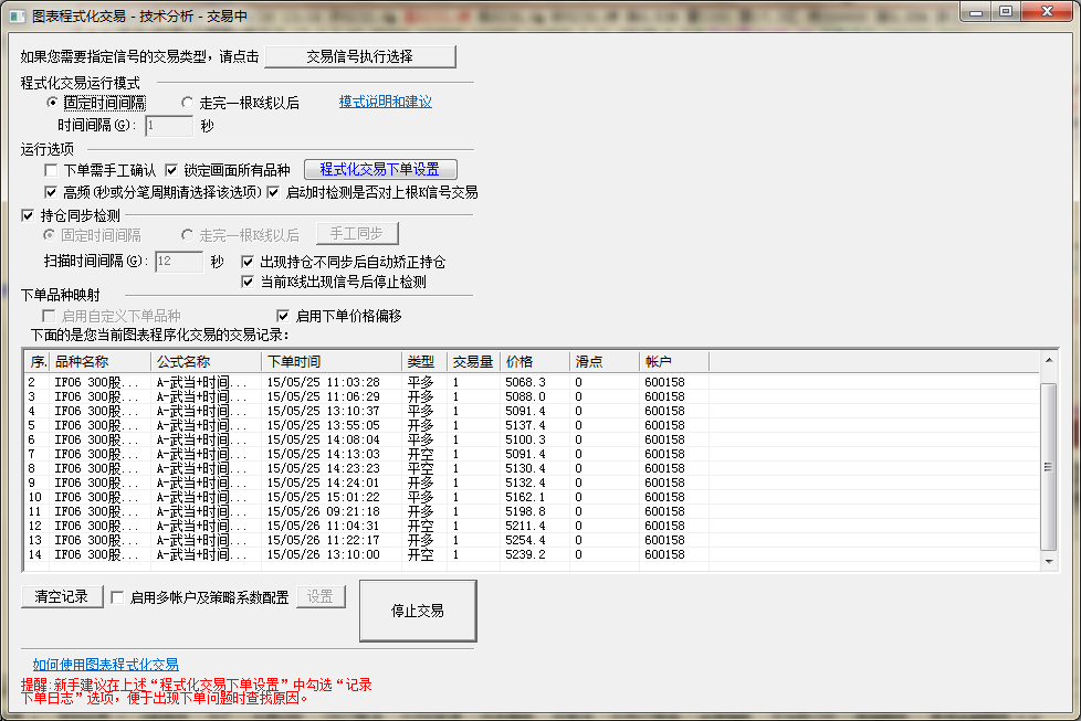 2015-05-25 14:23:23.911    【回报】品种 IF00 连续合约交易,请在 交易菜单->下单设置->勾选“允许主力连续合约下单交易”复选框。