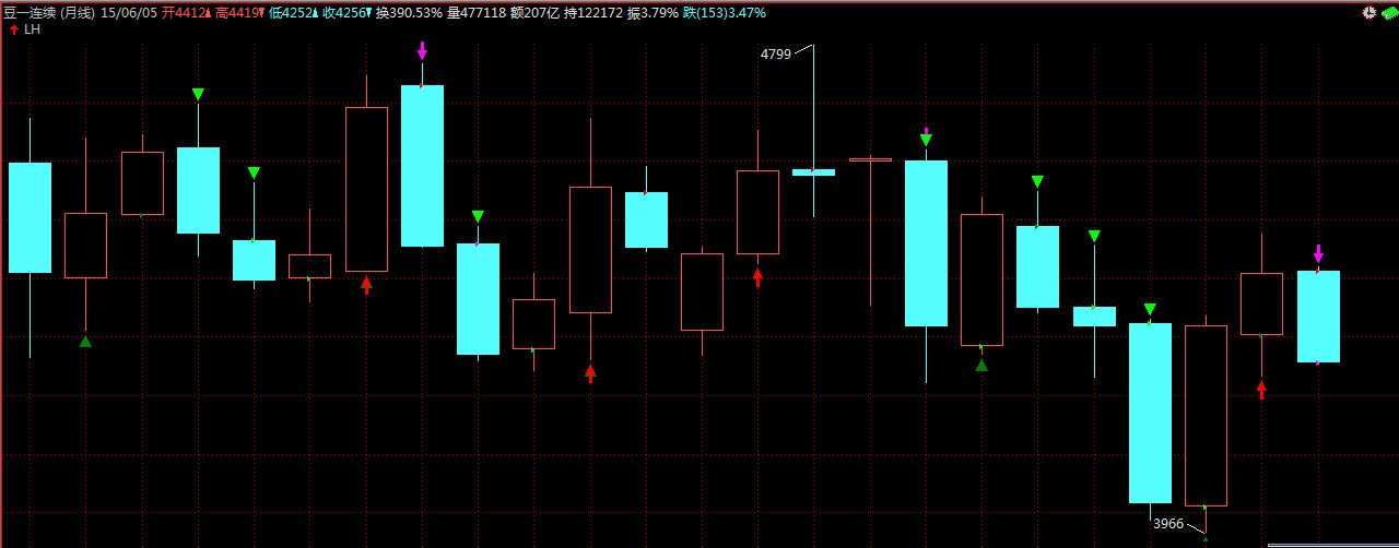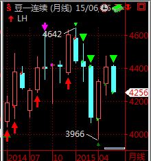 豆一连续,6月K线的全屏显示是平空信号。但在1/32的框架中,显示的却是开空信号?