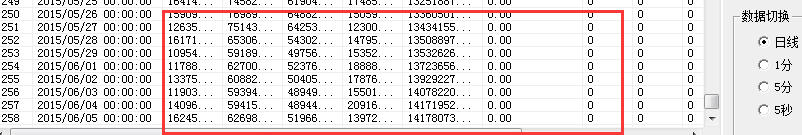 四楼那个下图是五个数据,请客服老师试下导入,看有没日线数据?