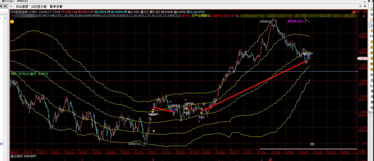 我上面箭头指的是理论开多位10930 ,但实际成交 竟然在下面10830开多,当时的时间点是完全不可能成交的