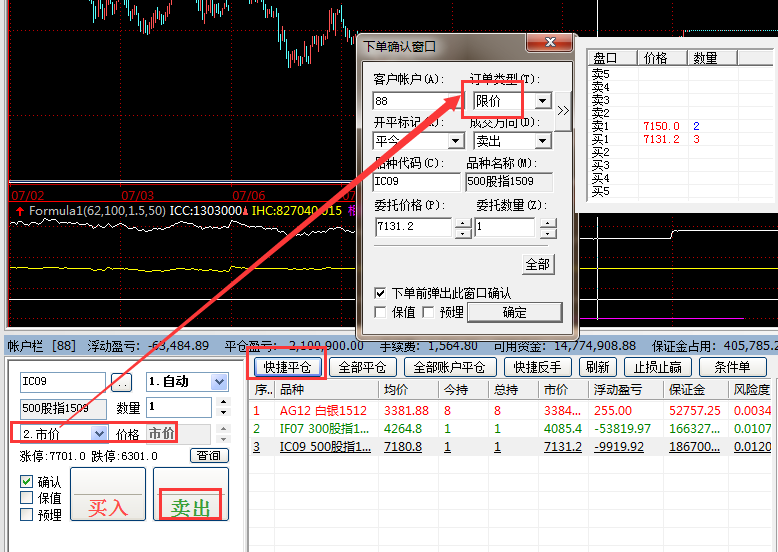 “快捷平仓”按钮的价格是系统设置好的对手价,