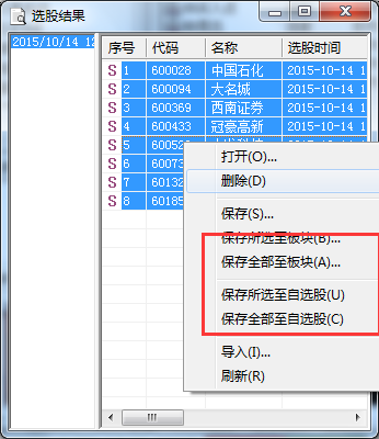 如何把金字塔的选股结果导入自选板块  发帖心情 Post By:2015/10/14 12:28:56 [只看该作者]