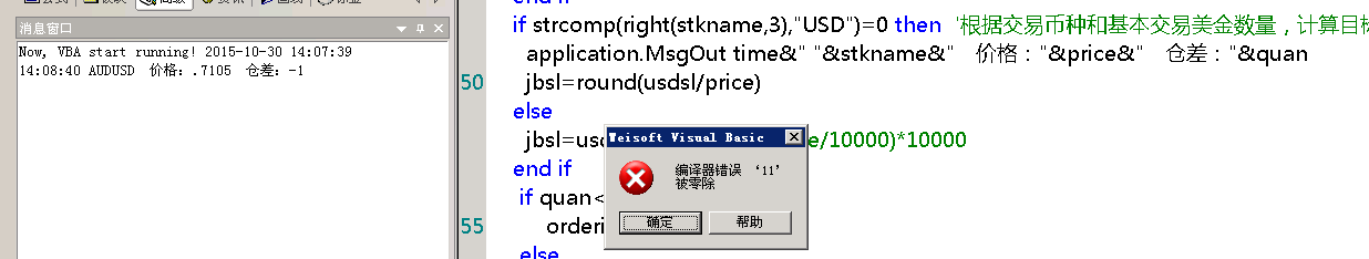 左边显示 的是输出的price , 不等于0,为什么 VBA编译器一直说我被零除?