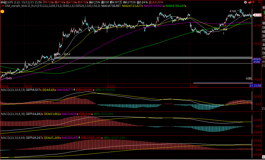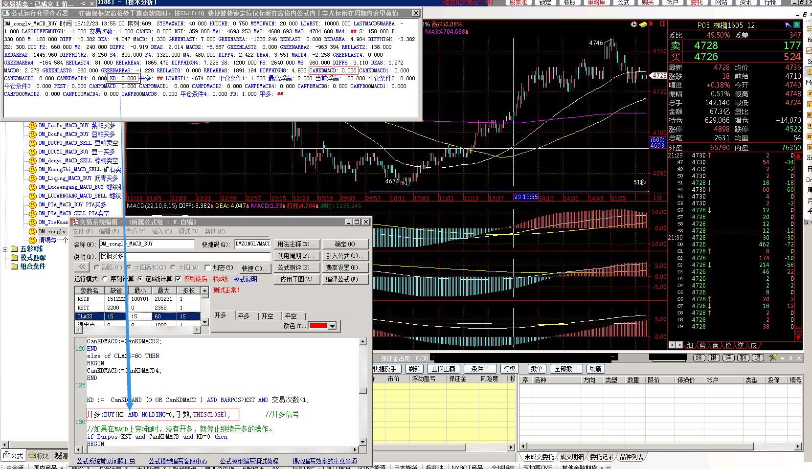 图二说明:实际下单点的运行变量数值。可以看出,不满足开多的条件。