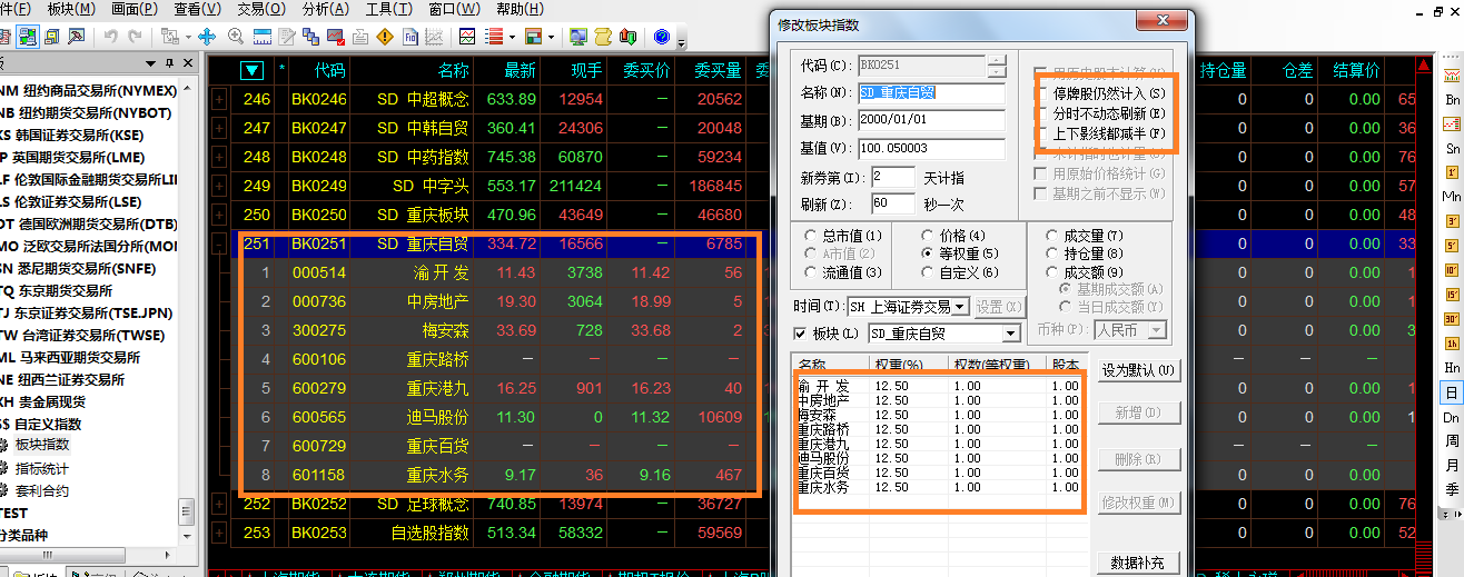 自定义板块,并且生成板块指数(板块指数设置如下截图:),然后导出这个板块的指数。