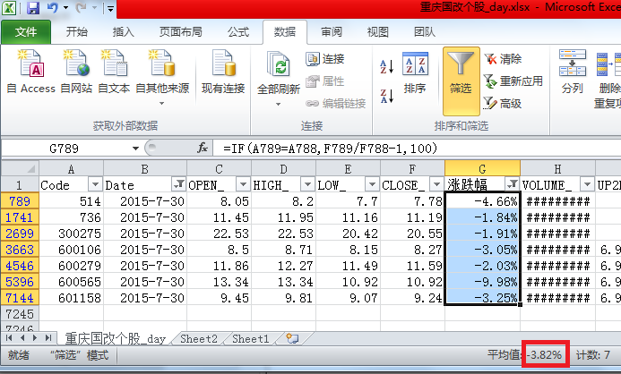 平均值为-3.82%,而2015年7月30 号 板块指数的涨幅为-0.07%,见下图:
