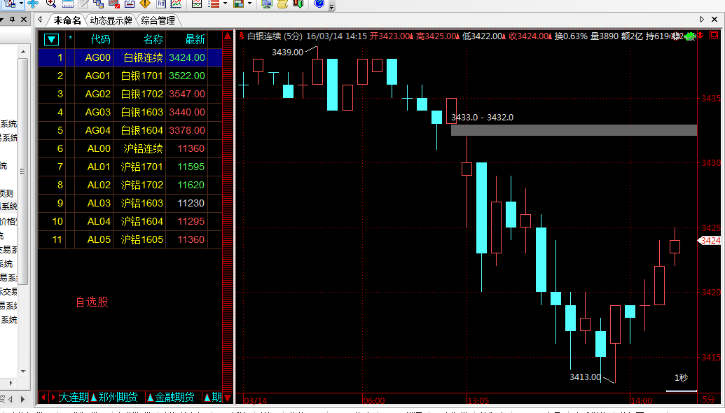 k线图就显示的左边列表里的自选品种