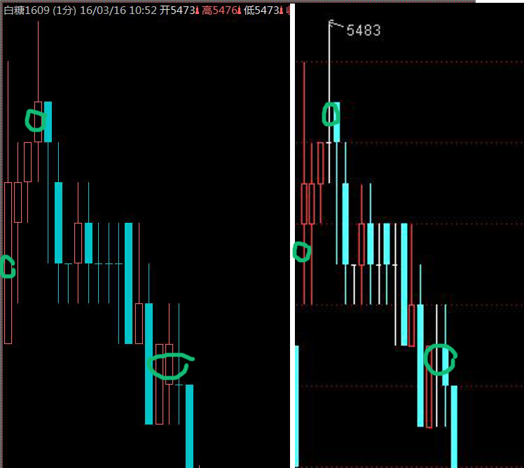 连接的哪台服务器,你那边第一根k的开高低收成交量各是多少?我这边看到的是5483