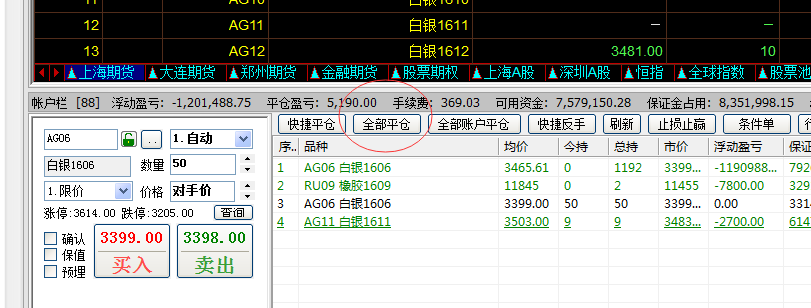 你点的账户栏上面的快捷平仓,还是全部平仓?