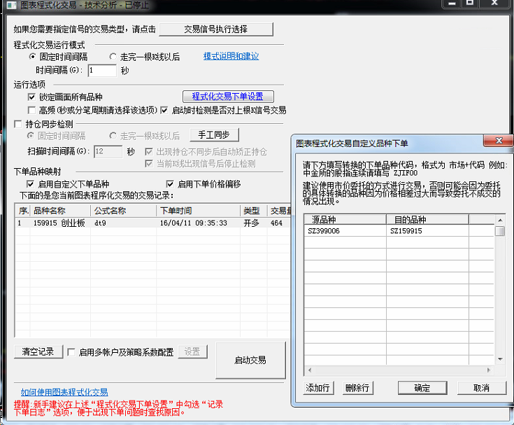 今天设置如图,出信号后交易数量不对,影射品种不对,我是用399006来做159915,资金共计20W