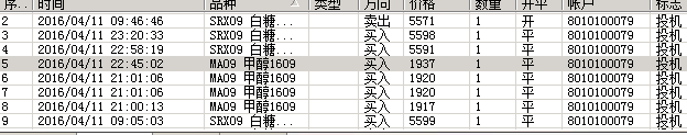 注意到有4个甲醇的下单出现了两个错误,第一个是时间搞错了,我用的是北京时区,22点根本就还没到,怎么会这样?第二个是我根本没有持有甲醇,按照我的后台程序这4个委托都应该是开单,怎么会变成平?