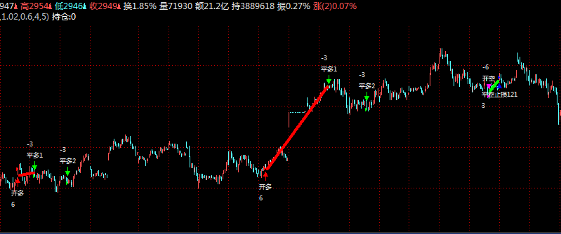 但我在同事的电脑上,就只能显示开平仓位置时的箭头,而没有连接开平仓位置之间的红绿连接粗线,这是什么原因啊