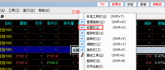 软件上方空白处点右键勾选标题栏