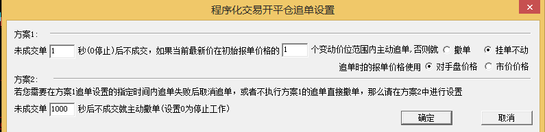 3、有没有哪里可以单独设置开仓与平仓的执行的,如开仓不追价,平仓追价。