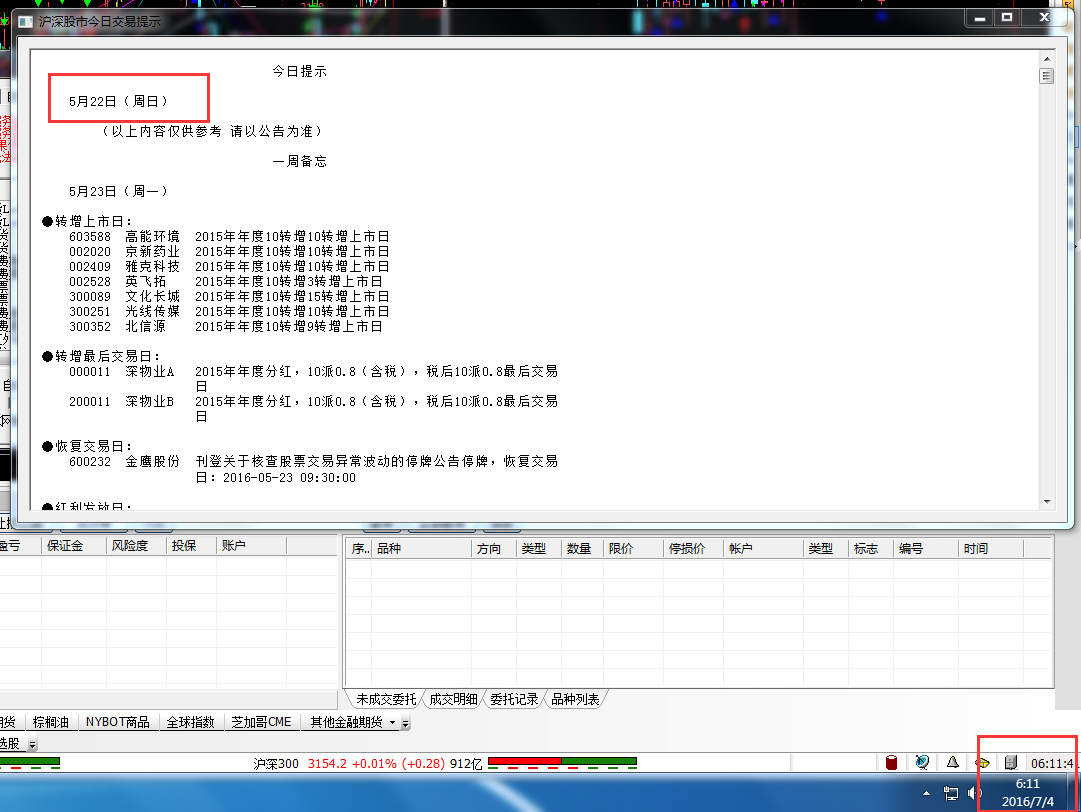 主题:今天7月4日早上开机,跳出的股票信息是5月22日的