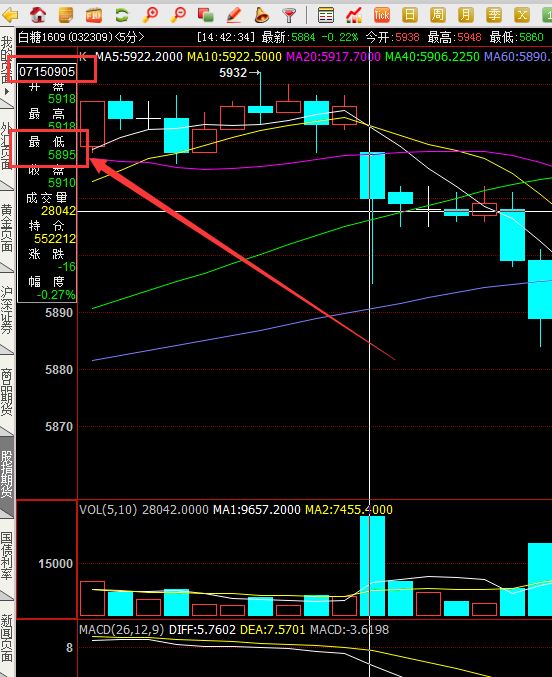 今天早上9点白糖1609合约5分钟K线显示最低价5897,但是其他好几个软件都是显示的最低价为5895,这是怎么回事?