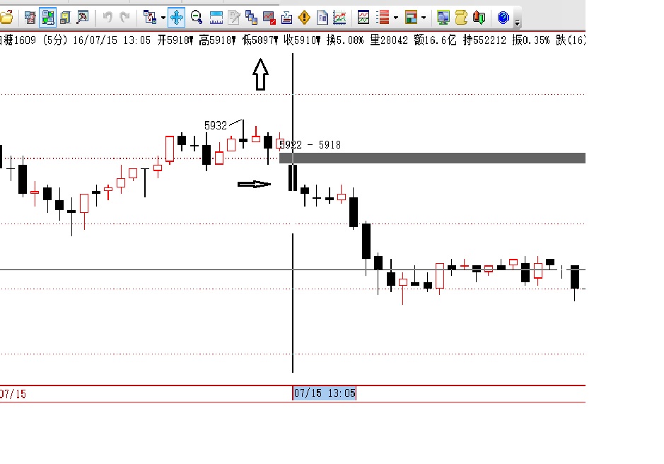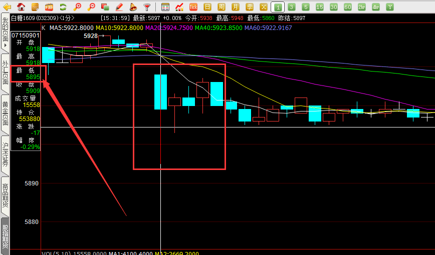 看1分钟周期,开盘前5根的最低价也是5895,如图