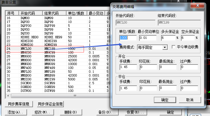 在交易——合约信息设置里面设置了CL00--CL12,但是对美原油连续进行测试时(选择按照系统预设品种费率),