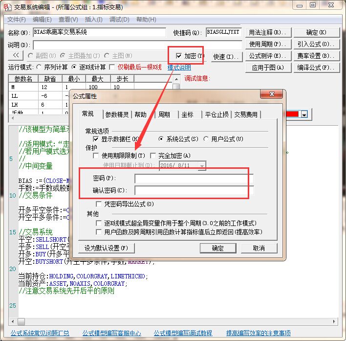 在公式编辑界面中,勾选加密,会弹出一个加密的弹窗,在里面填写密码就可以了