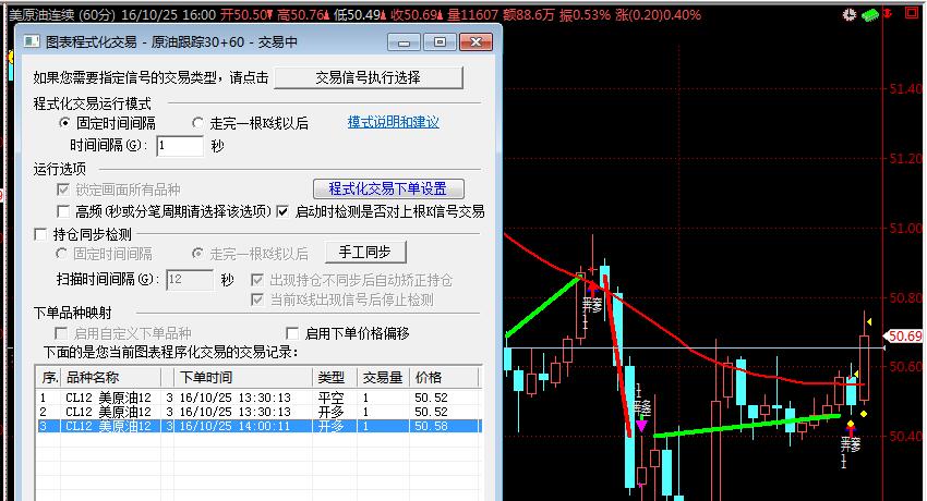 比如:在60分钟周期中,用轮询的方式。持有一手多单。当出现信号的时候。只发出了一个指令(图中序号3的指令,1,2指令是之前策略的信号,有先平再开)。
