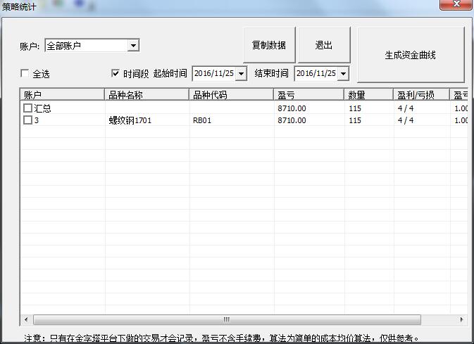 2、策略统计中的盈亏算法是简单的成本均价算法,仅供参考。