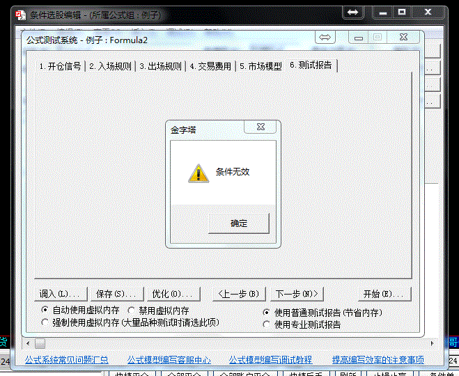 金字塔客服中心 - 专业程序化交易软件提供商金字塔软件金字塔软件问题提交 → 对条件选股公式进行测评时,显示条件无效,有什么不对?