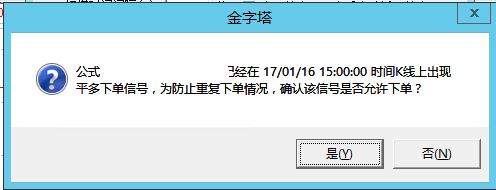 金字塔客服中心 - 专业程序化交易软件提供商金字塔软件金字塔软件问题提交 → 启动交易的时候,询问最后一根K已出现信号,是否允许开仓,该选是还是否?
