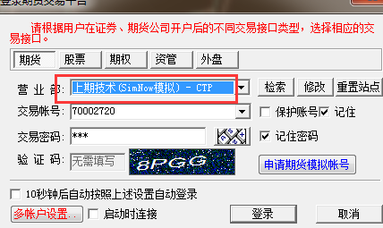 也可以申请simnow的,金字塔里对应登陆的模拟交易站点是上期