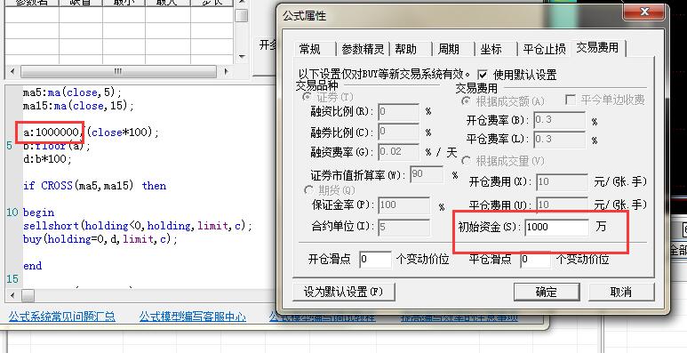 1、下单资金仍是100w,只是费率设置里的初始资金修改为1000w甚至1亿即可,如附图;