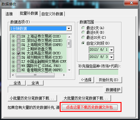 新版的批量数据补充,统一按市场进行补充,等于是通过历史数据包进行的一种补充方式,所以软件中没有重复提供之前的百度网盘下载模式。建议直接使用批量数据补充。