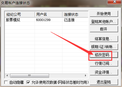 交易账号密码修改在登录交易账户成功后有密码修改