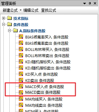 在管理面板--公式--条件选股中,有现成的macd选股指标,加载到本地预警中即可。