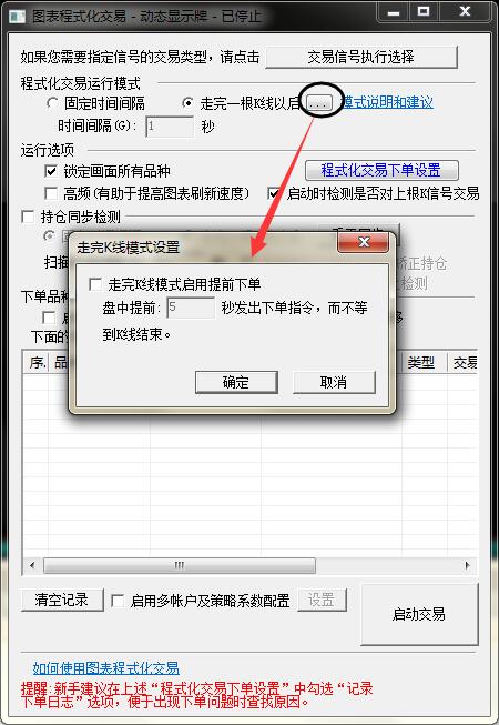 程序化交易时用走完K线模式下  提前多少秒进场的在哪里设置