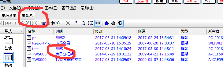 新建框架会有名称和说明,但是在软件左上角的框架栏显示的是框架说明。