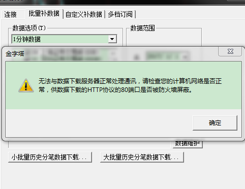 刚下的软件,在补充历史数据的时候,跳出一个框,显示 如附件。说防火墙屏蔽。HELP!