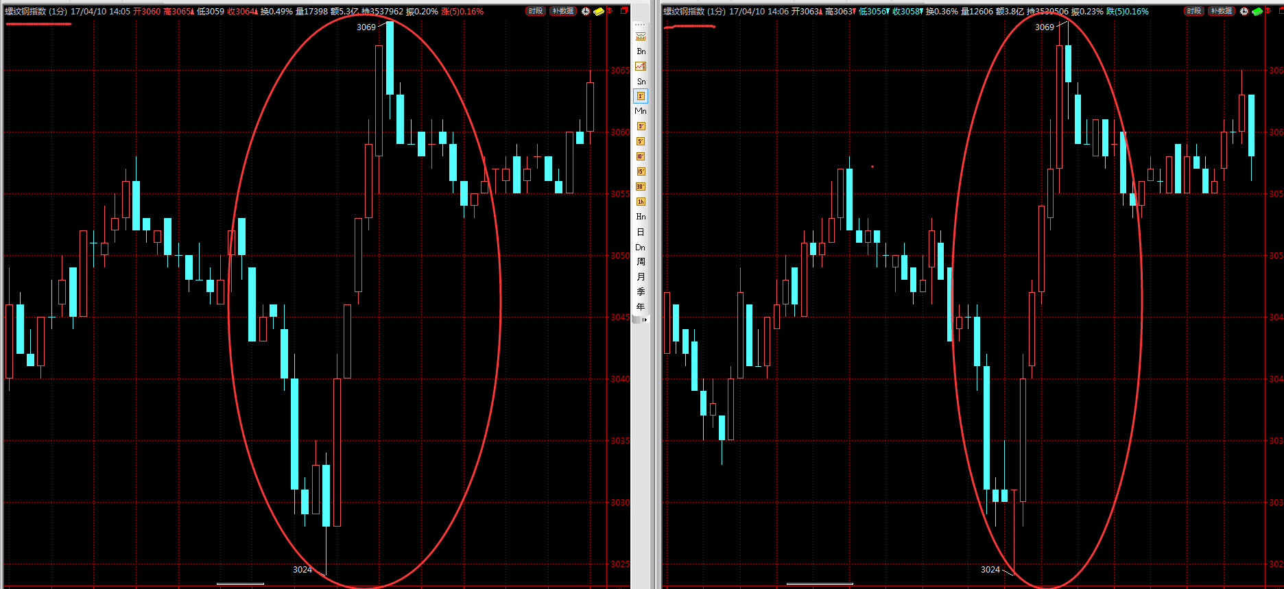 指数品种不是交易所推送数据,而是各软件服务器根据12个月份合约持仓量加权计算出来的结果,连接的行情服务器不同,结果会稍有差异。