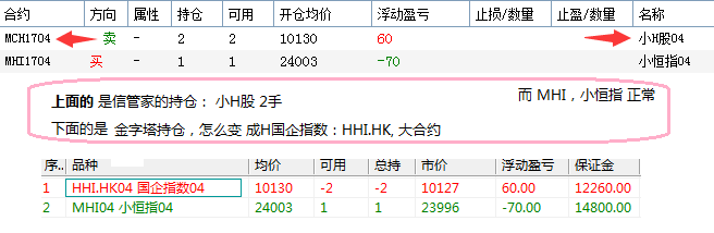 你在金字塔中下一个限价未成交单hhi品种,然后在鑫管家里看下挂的是哪个品种。
