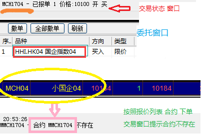 鑫管家报单 MCK(小合约)时,金字塔的交易状态窗口显示正常,