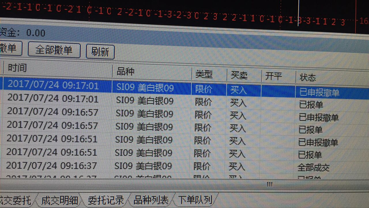 2017-07-24 09:44:52.507    【回报】1139305 : SI09 美白银09 - 已撤单 量:1