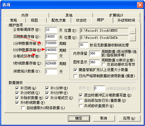 “只需保存一天的分笔数据,一分钟数据只要保存2天就够了 五分钟数据只要2个月足已 日线数据只要300天足矣 F10 的背景资料俺不要。”