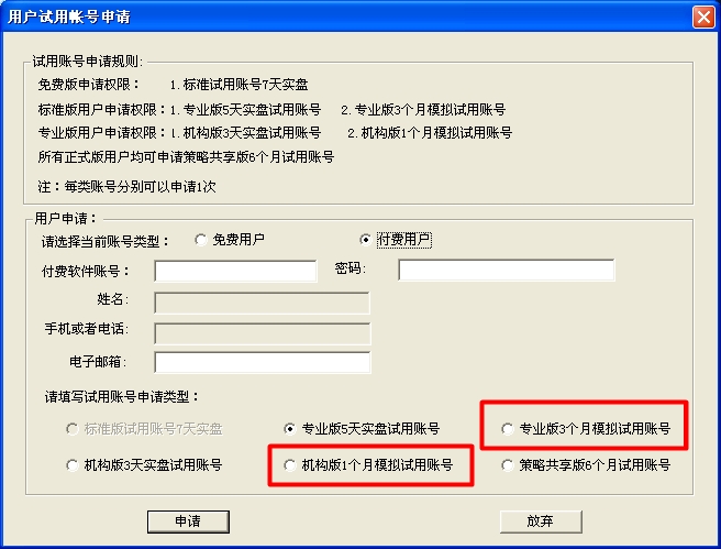 其实你们也可以看看国内其他的主力交易软件,他们的功能基本上对于试用者是全部开放的,包括TB,mC,文化财经也在不久前开放了全部功能!我希望你们也能这样!